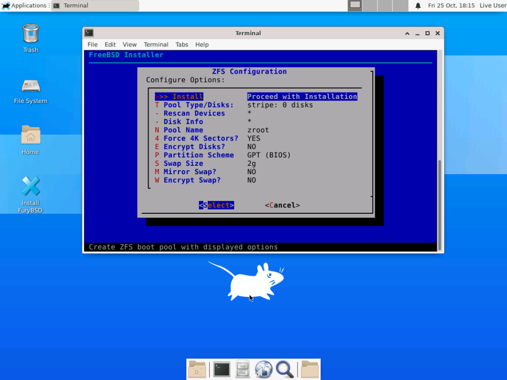 FuryBSD preview screenshot showing the installer.